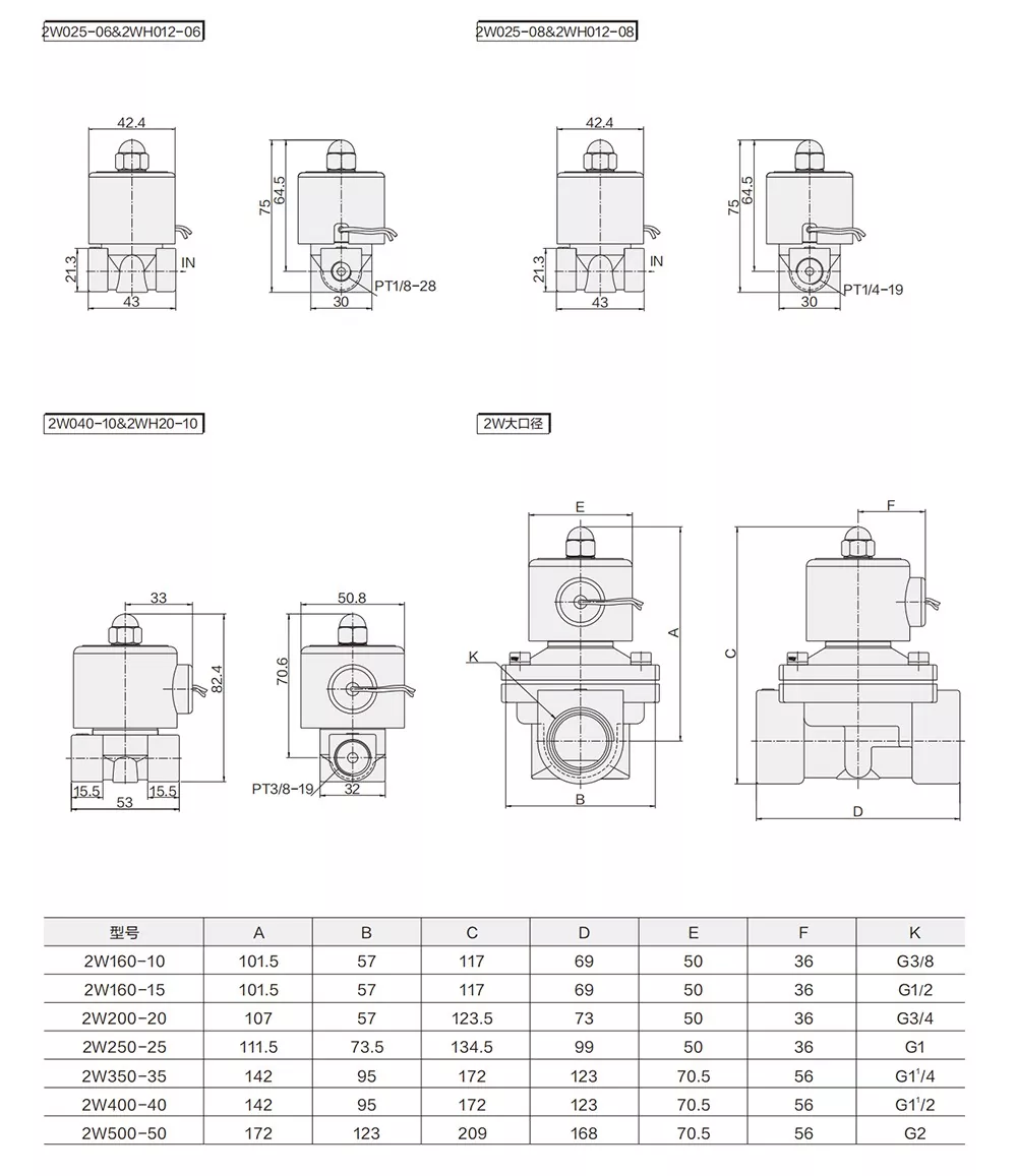 ② Böyük Orifice Ölçüsü - 2W seriyası model kodu (16MM-50MM)