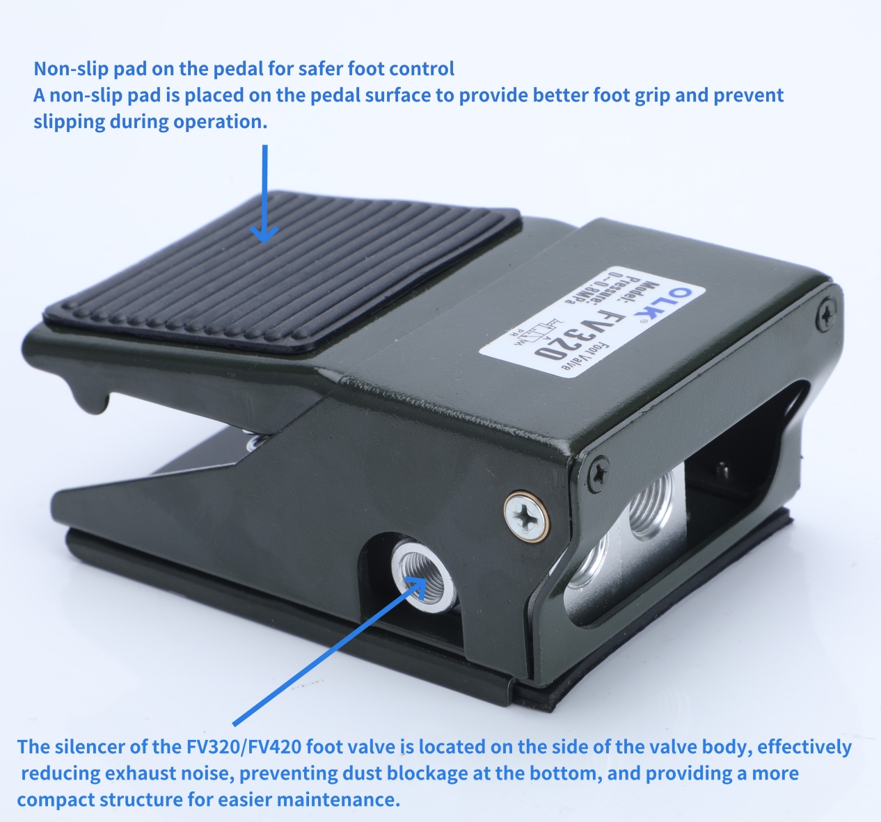Olk Çin Pnevmatik İstehsalçı Yaxşı FV320 / 420 seriyalı ayaq klapan 3 yol 4 yol. FV320 / 420 Foot Pedal klapanı Sinlge-Action-a məxsusdur