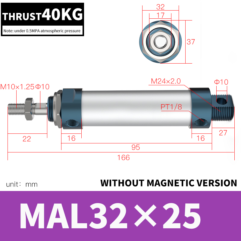 MAL seriyalı mini silindr Standart spesifikasiyalar: