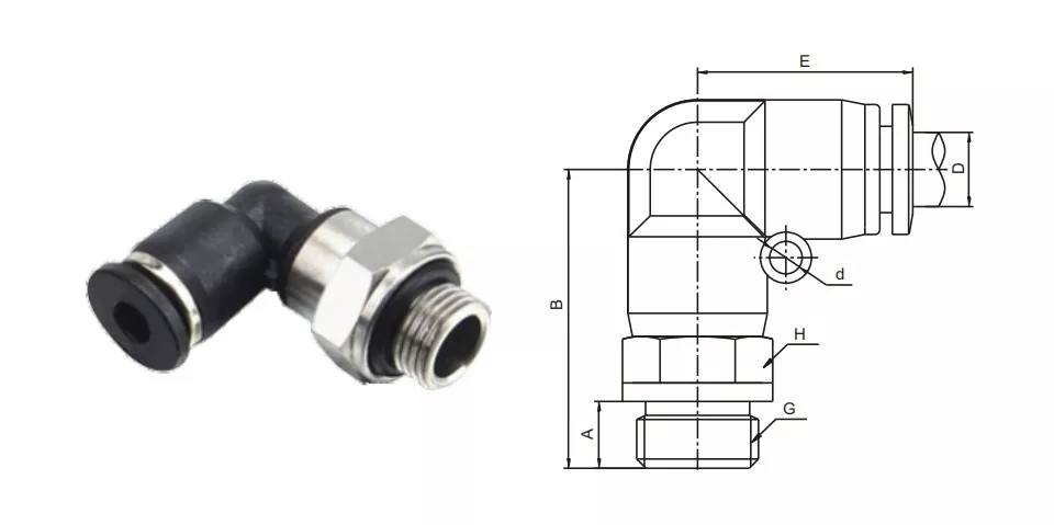 PL-G Kişi Dirsək Tube Uyğunlaşması, 90 dərəcə bir dirsək bağlayıcısı və ya məhdud yerlərdə istifadə üçün ideal olan g mövzusudur və ya boru kəmərinin yönləndirilməsi tələb olunur. Hava və ya maye sızmasının qarşısını almaq üçün möhürləmə üzükləri ilə.