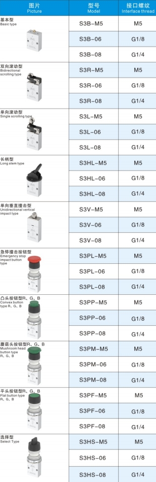 S3 Series Mexanik Düymə Nəzarət Valve 3 Yol Ümumi Parametrlər