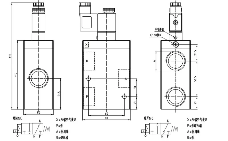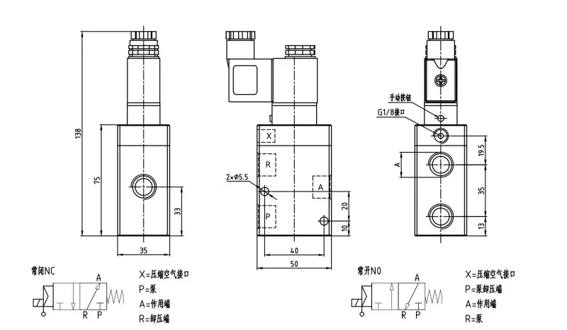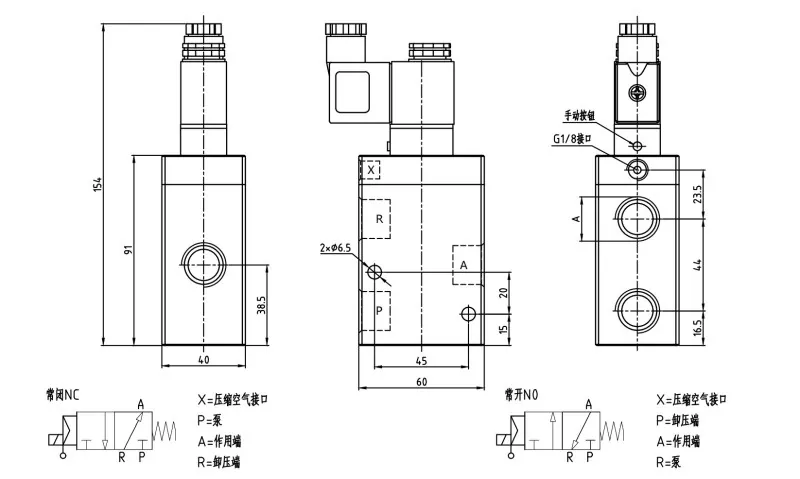 Yivli port (p, a, r) ölçüləri G1 / 8-də sıxılmış hava limanı (X) olan G3 / 8, G1 / 2 və G1-də mövcuddur.